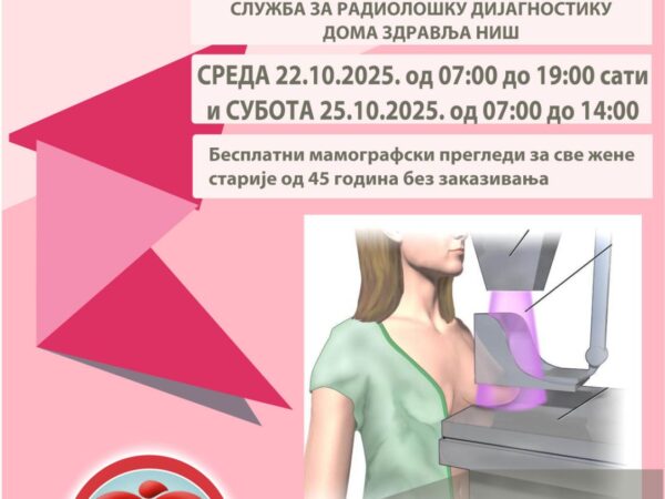Захваљујући великом ангажовању запослених у Дому здравља Ниш, урађено је близу 4.500 мамографских прегледа за перид од 01.01. до 20.10.2025. године. Дневно је позивано око 300 жена, а заказивано између 25 и 30 жена за