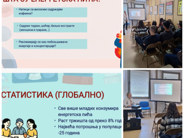 ДетаљнијеДана 08.04.2026. год. педијатар Дома здравља Ниш у просторијама Саветовалишта за младе одржао је предавање ученицима средње школе „Бора Станковић“ на тему ЕНЕРГЕТСКА ПИЋА И СУПЛЕМЕНТИ НА ЗДРАВЉЕ ДЕЦЕ Енергетска пића и суплементи све су