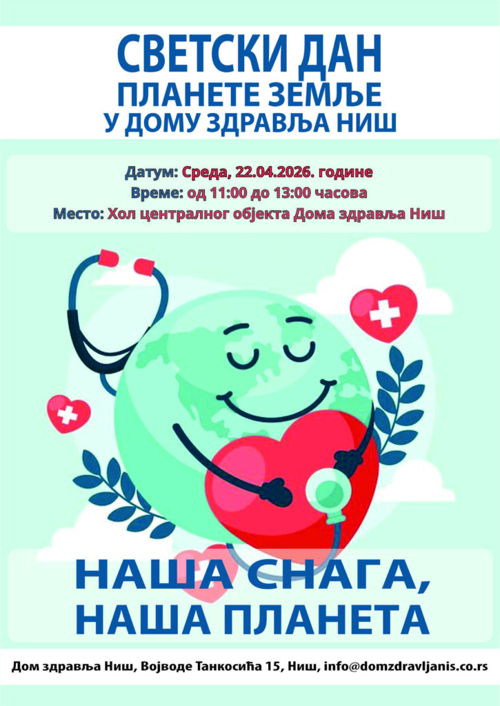 Дан планете земље обележава се 22. априла и ове године носи мото „Наша снага, наша планета“. Дом здравља Ниш, Центар за превентивне здравствене услуге, придружио се акцији обележавања овог значајног датума из Календара здравља пригодном акцијом у централном холу установе.