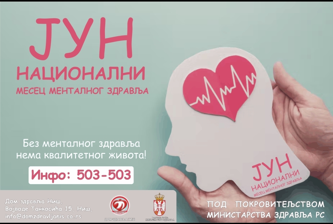АКТИВНОСТИ ДОМА ЗДРАВЉА НИШ ПОСВЕЋЕНЕ ЈУНУ- НАЦИОНАЛНОМ МЕСЕЦУ МЕНТАЛНОГ ЗДРАВЉА