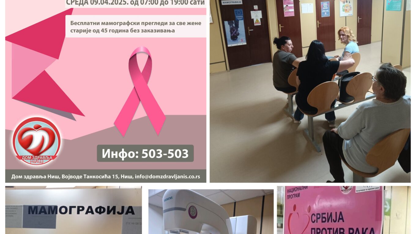 Молимо суграђанке да и даље исказују одговорност и брижност за своје здравље и ураде све превентивне прегледе које организује Дом здравља Ниш.
