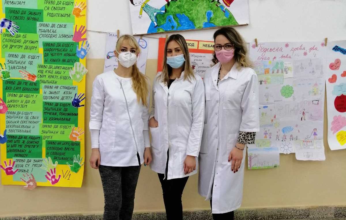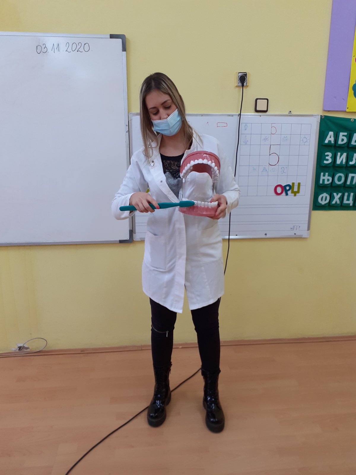 Здравствени радници су на моделу демонстрирали технику прања зуба и одржали предавање на тему „Исхрана и каријес“, поштујући све епидемиолошке мере заштите.