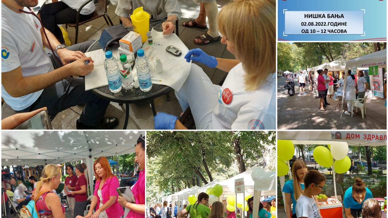 У сарадњи са градском општином Нишка Бања у уторак 02.08.2022.године Дом здравља Ниш организовао је четврти Базар здравља овог лета. Од 10:00 до 12:00 часова у предивном амбијенту шеталишта у Нишкој Бањи сви посетиоци Базара здравља били су у прилици да провере своје здравствено стање и да се упознају са значајем превентивних прегледа и здравим стиловима живота. Као и до сада, свима којима је уочено одступање здравственог стања од нормалних вредности, препоручено је да се јаве свом изабраном лекару ради даљег сагледавања, праћења и евентуалног лечења.