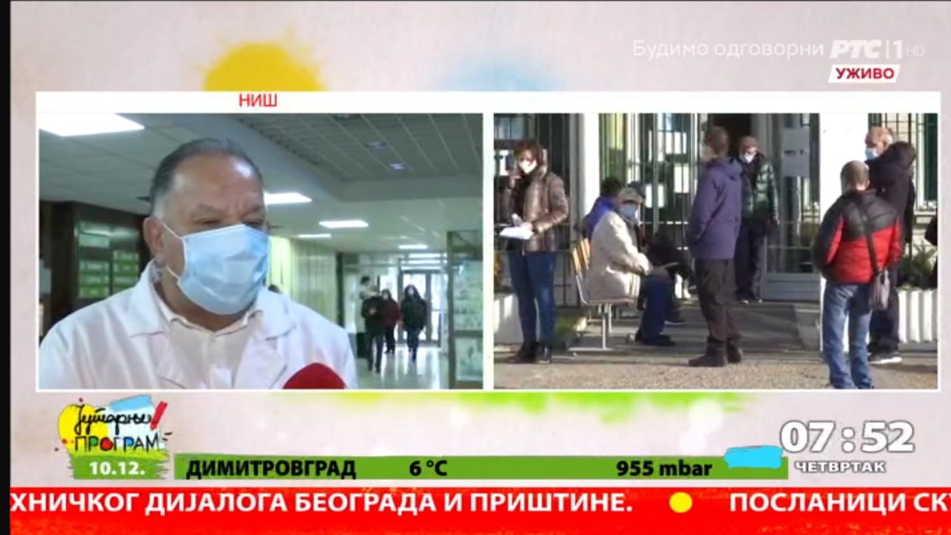 Директор Дома здравља Ниш, проф.др Милорад Јеркан је давајући изјаву за РТС говорио о броју пацијента који се јављају у нишким ковид амбулантама, као и о броју позитивних.