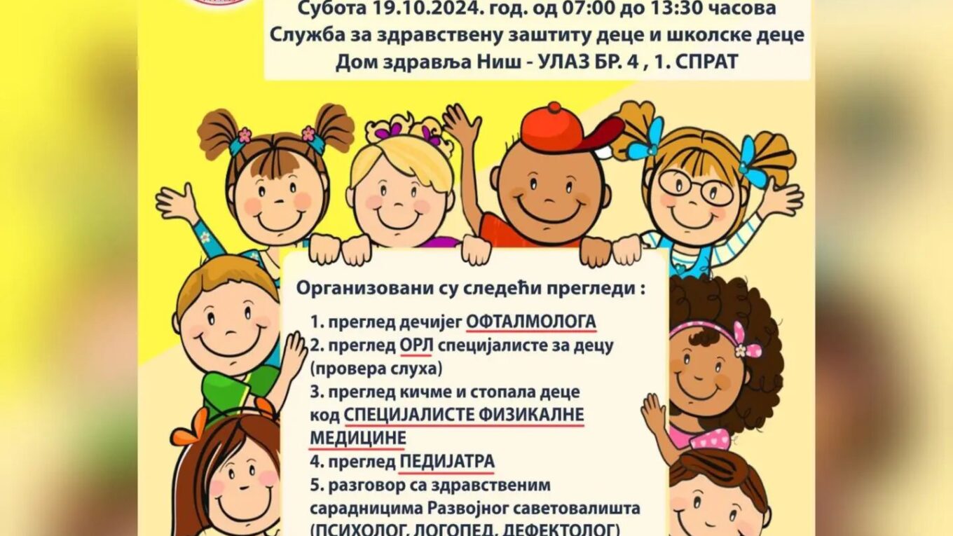 ДОМ ЗДРАВЉА ИМА ПЛАН СТРАВА ДА СВА ДЕЦА БУДУ ЗДРАВА- АКЦИЈА ПРЕВЕНТИВНИХ ДЕЧИЈИХ ПРЕГЛЕДА У СУБОТУ 19.10.2024.ГОДИНЕ У ДОМУ ЗДРАВЉА НИШ