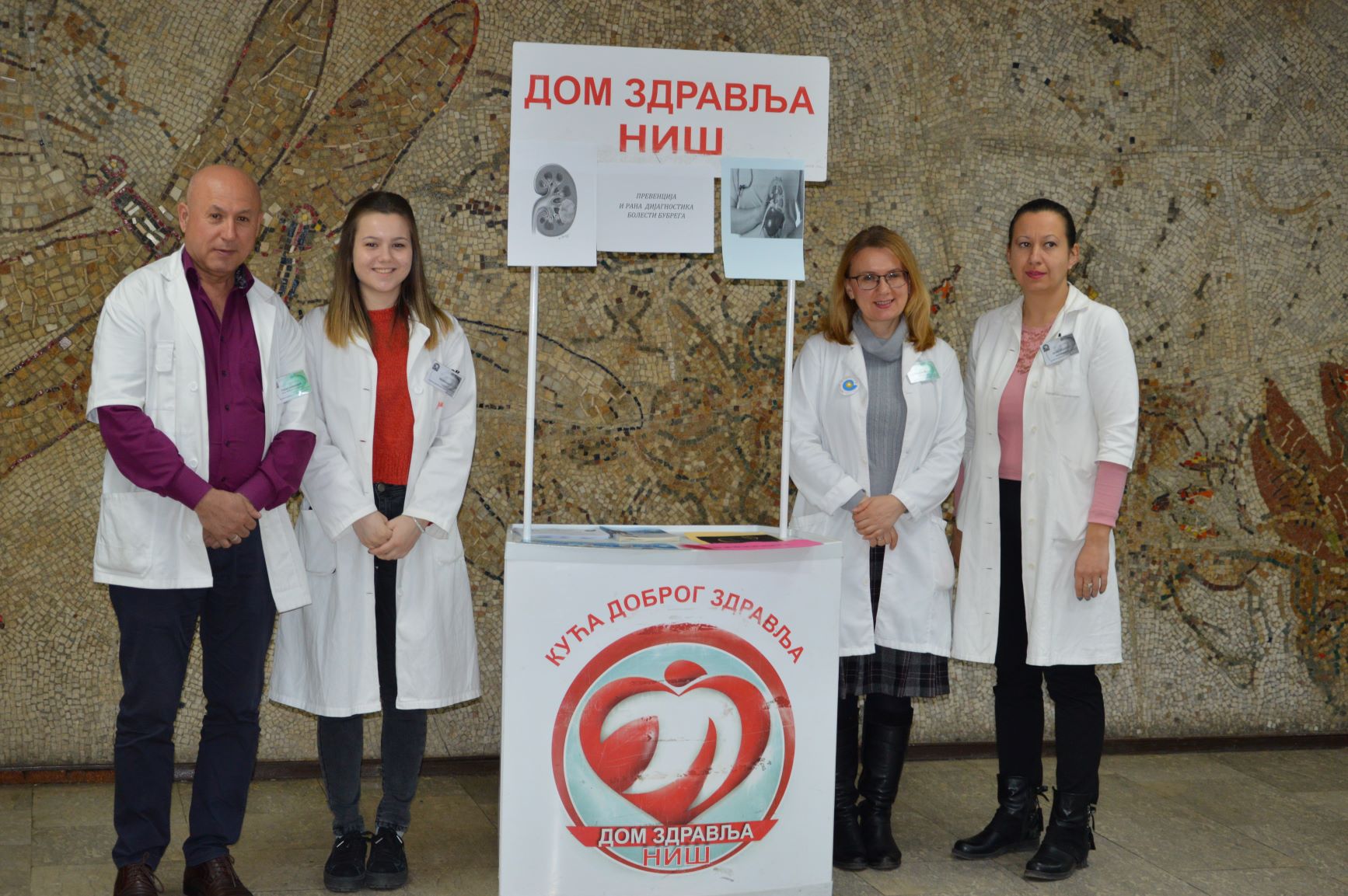 Поводом обележавања  Светског дана бурега Служба за здравствену заштиту одраслих-  Центар за превентивне здравствене услуге Дома здравља Ниш, организовао је акцију у централном холу Дома здравља Ниш на тему „Превенција и рана дијагностика болести бубрега“.