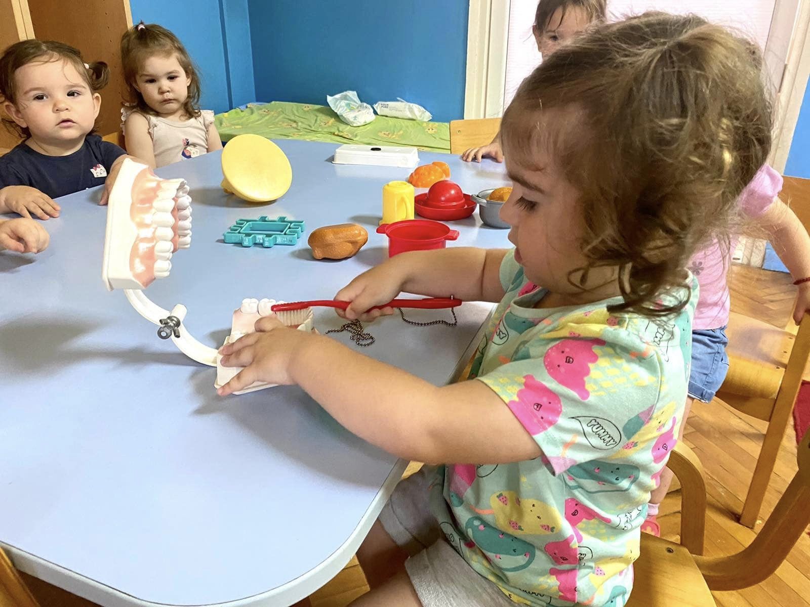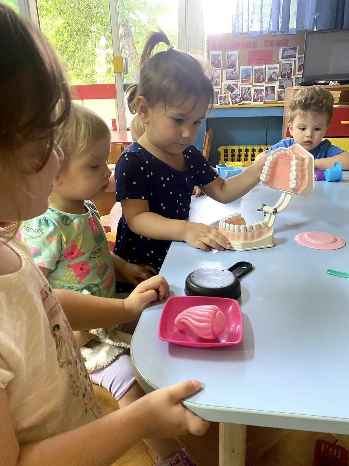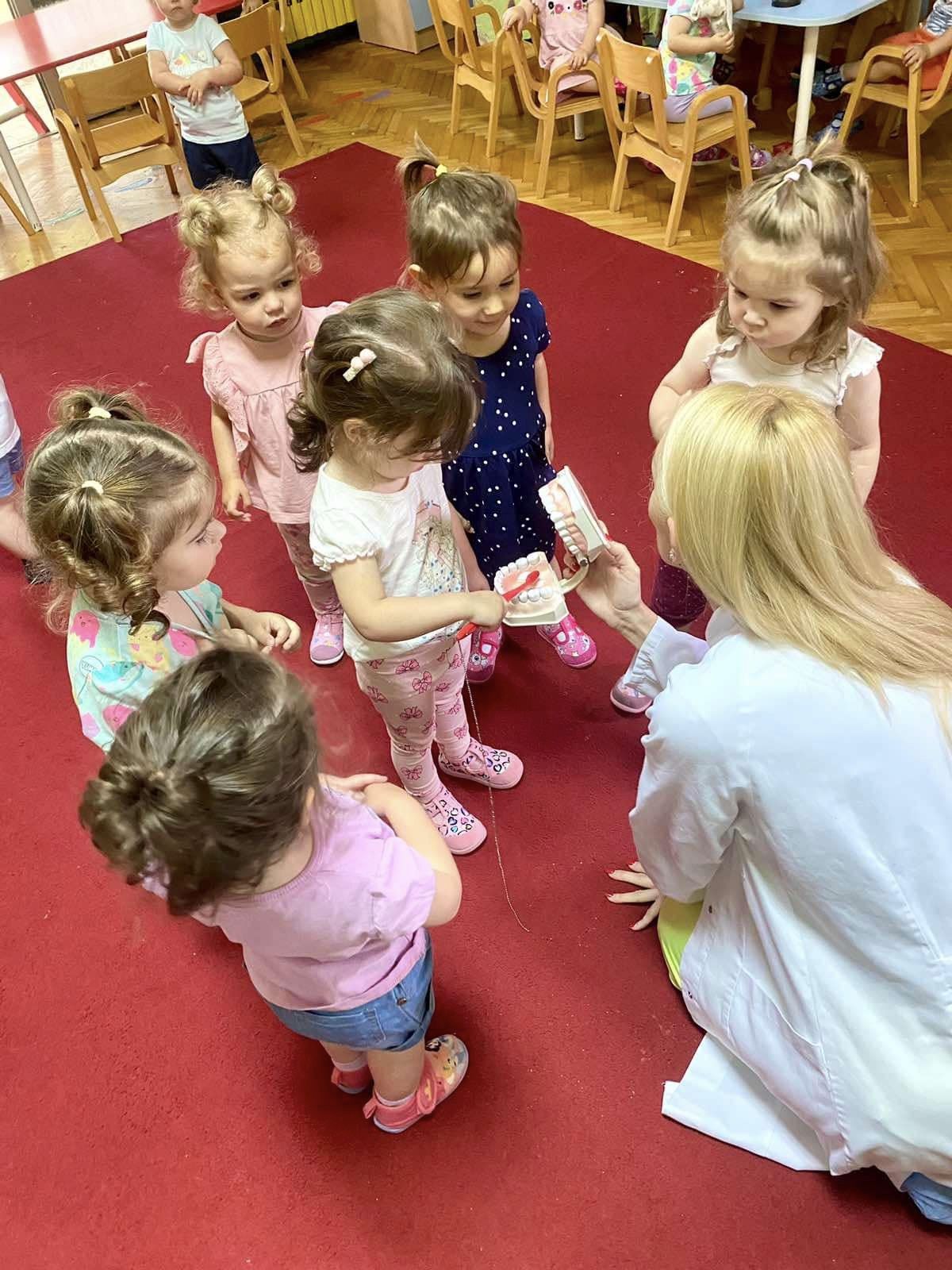 Наши најмлађи пацијенти имали су прилику да уз бојанке и играчке стекну прва знања о значају правилне исхране и технике прања зуба.