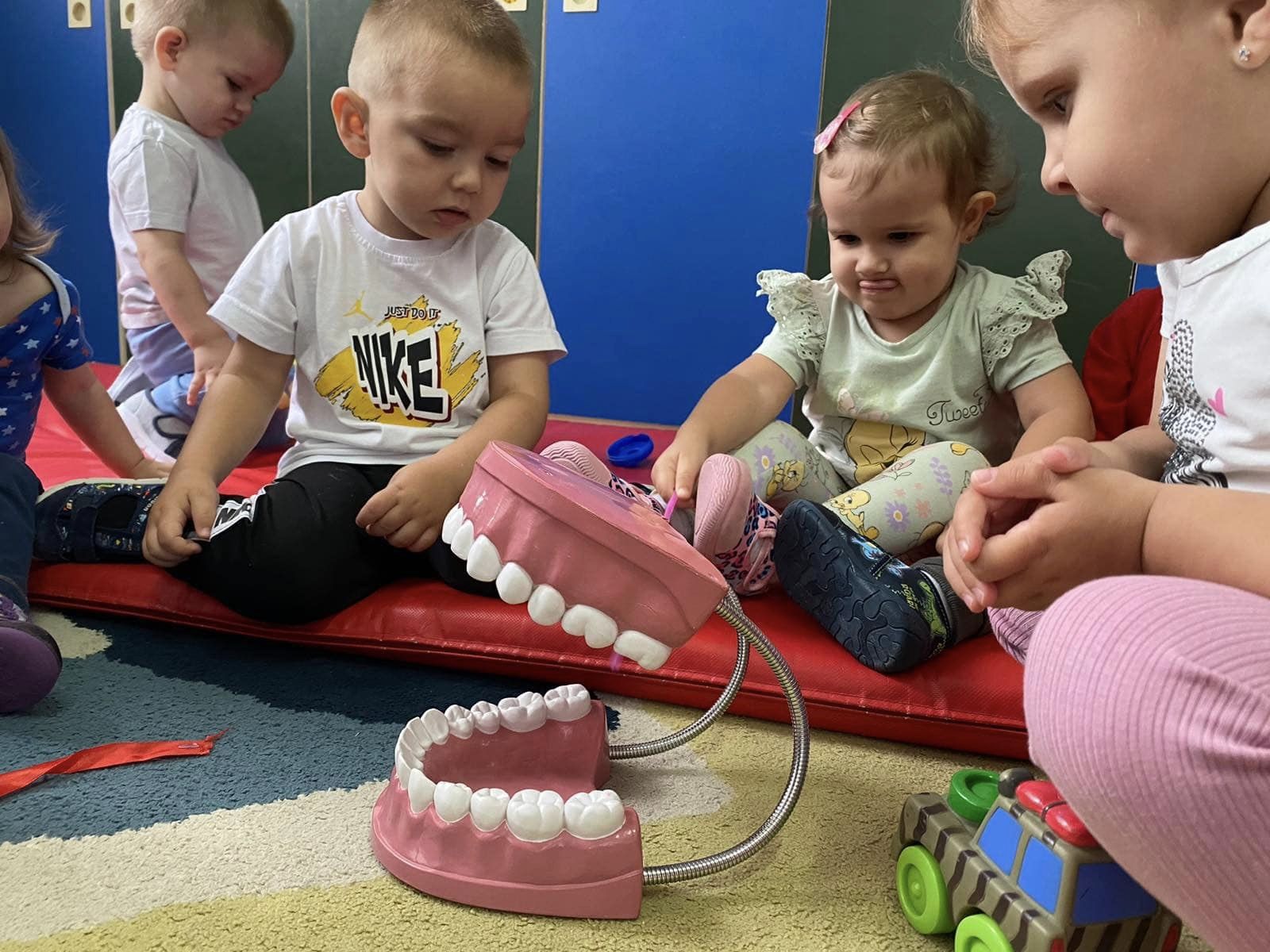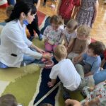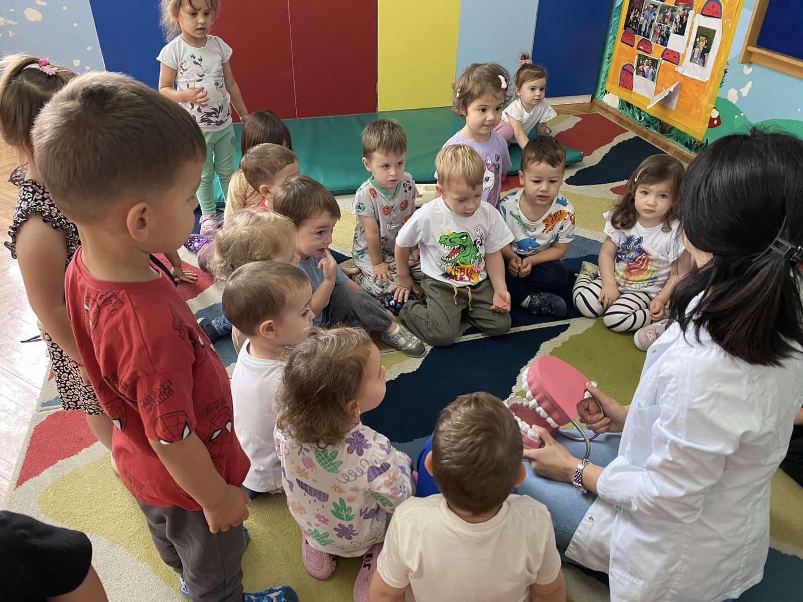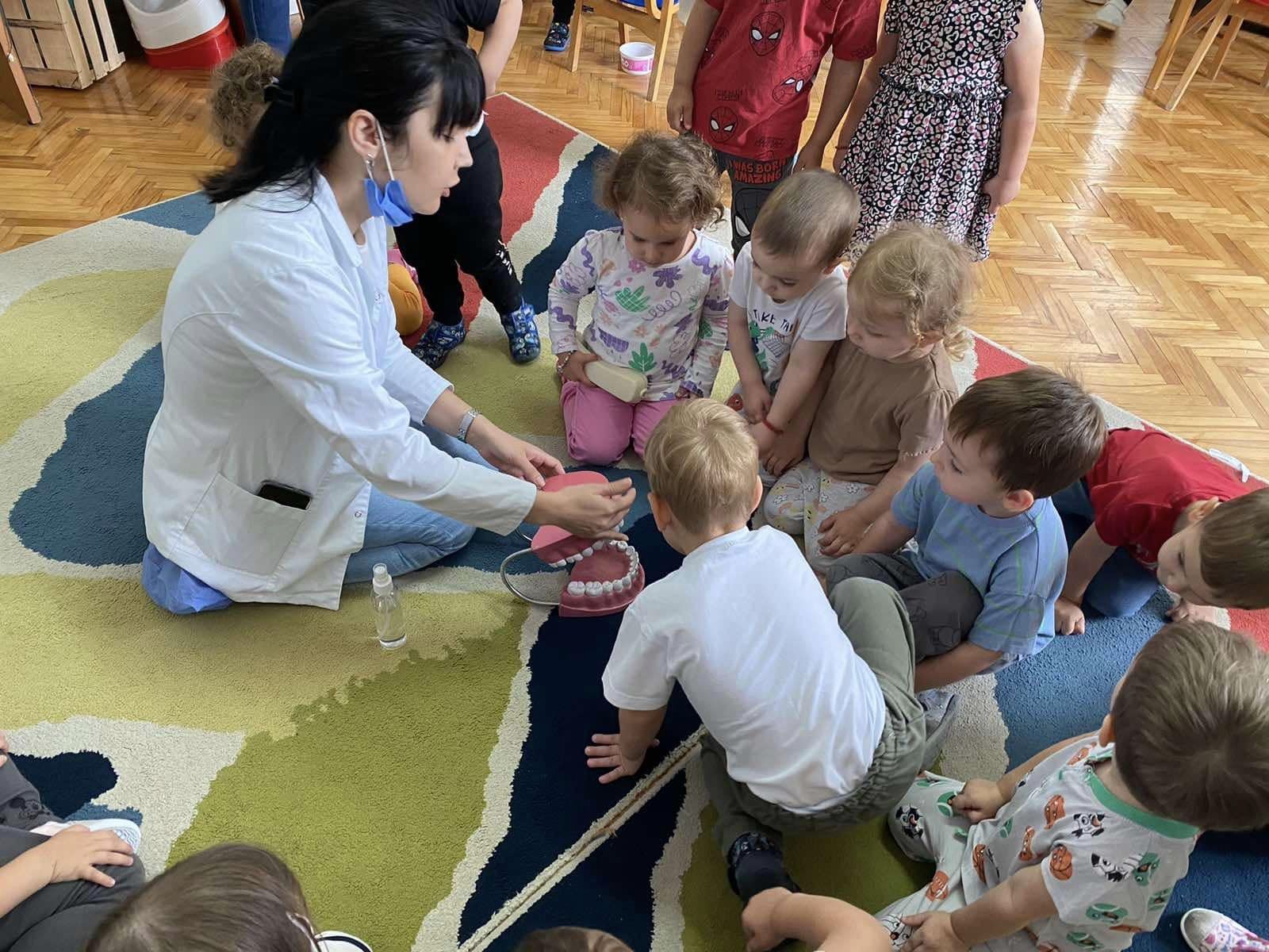 Наши најмлађи пацијенти имали су прилику да уз бојанке и играчке стекну прва знања о значају правилне исхране и технике прања зуба.