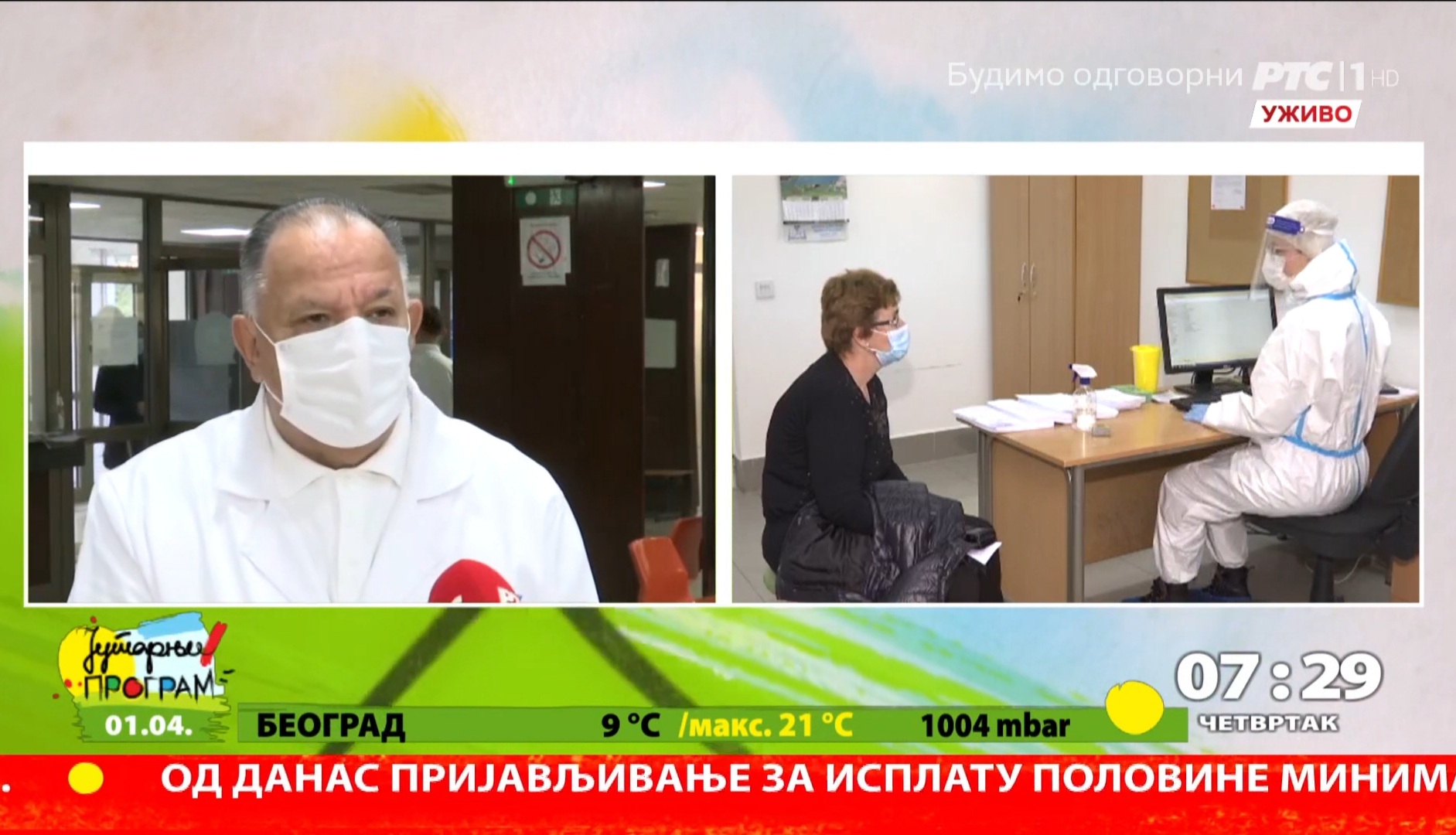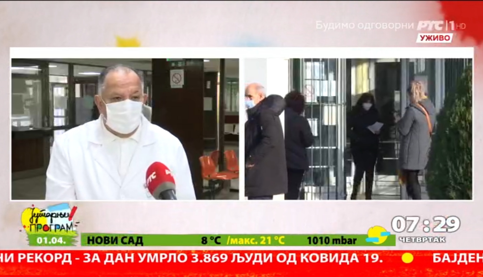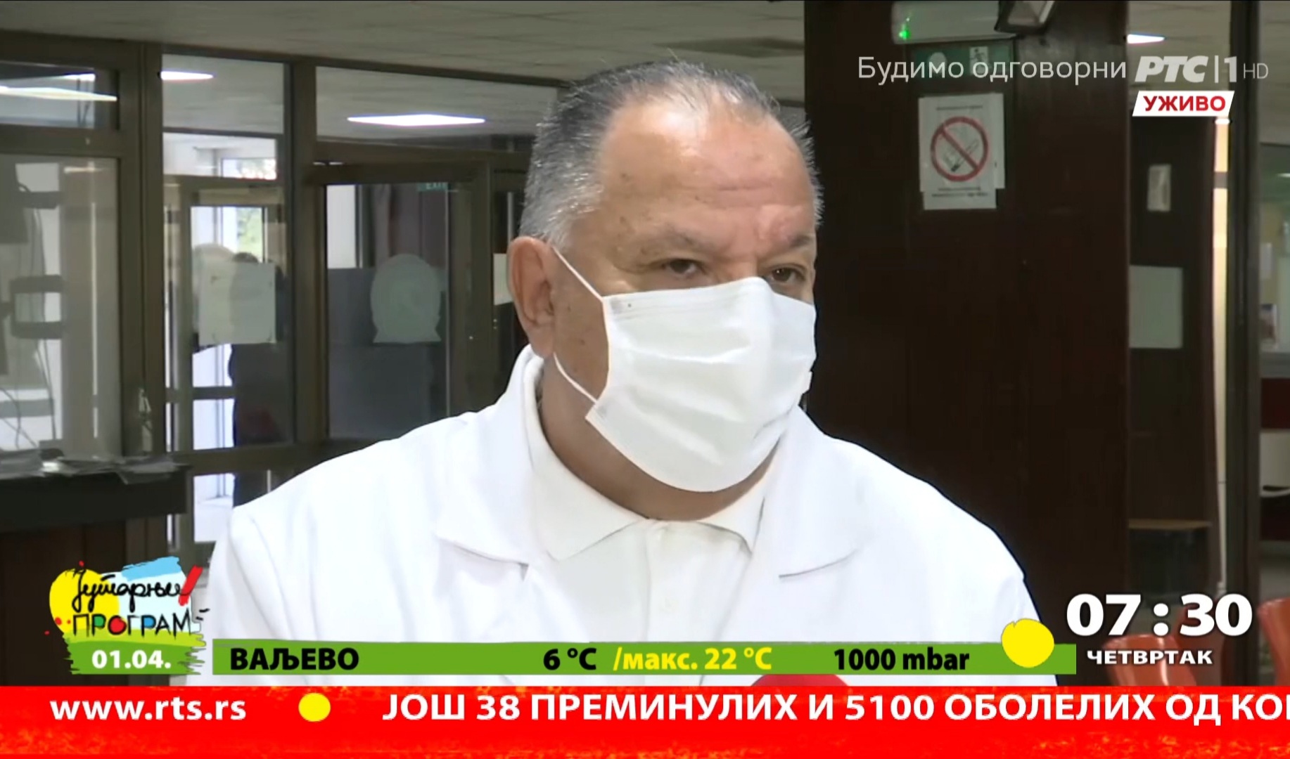У уживом укључењу у јутарњи програм на РТС телевизији директор Дома здравља Ниш изјавио је епидемиолошка ситуација у Нишу иако је врло озбиљна ипак показује мало побољшање, што никако не треба да доведе до опуштања грађана.
