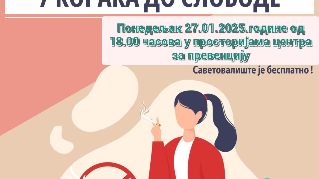 Нова група полазника Саветовалишта за одвикавање од пушења почиње са радом од понедељка 27.01.2025.године са почетком у 18:00 часова у просторијама Центра за превенцију у приземљу Дома здравља Ниш.