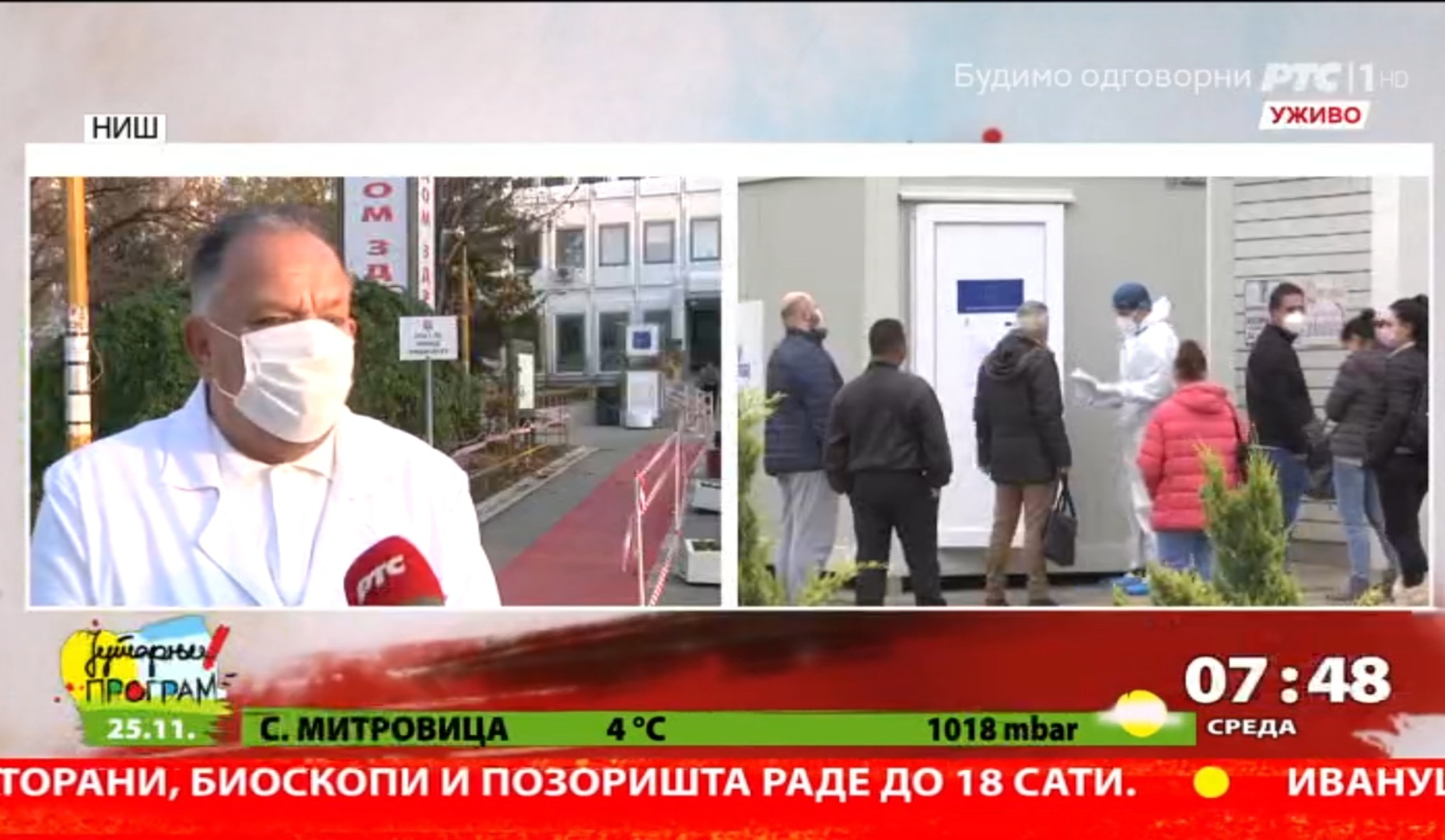 Проф.др Милорад Јеркан је у уживом укључењу у јутарњем програму РТС телевизије говорио о најновијим подацима везаним за ковид19 који указују да је претходних неколико дана значајно повећан број пацијената који се са симтомима сумњивим на ковид19 јављају у неку од три ковид амбуланта.