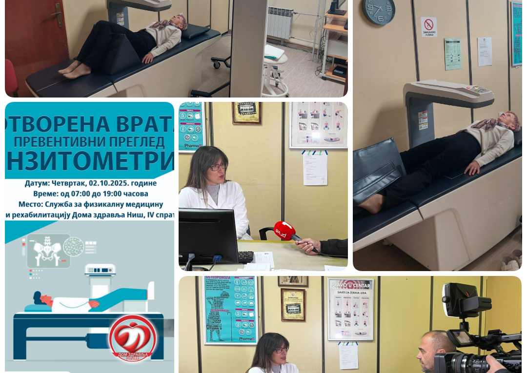 Служба за физикалну медицину и рехабилитацију Дома здравља Ниш у оквиру акције „Отворена врата за дензитометрију“ сваког четвртка и суботе организује преглед одређивања минералне густине костију – дензитометрију.