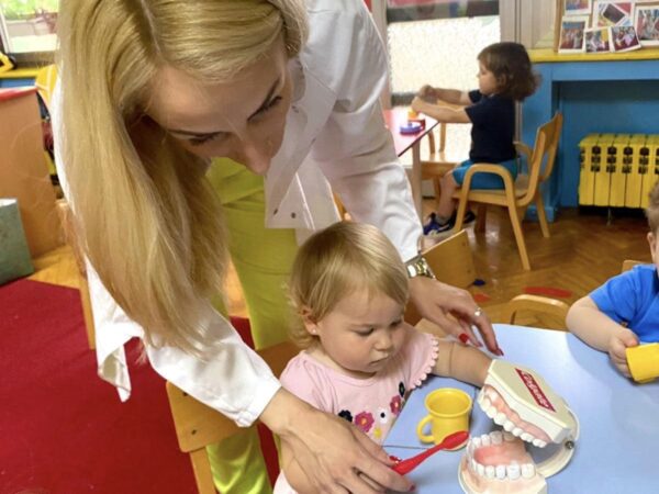 ДетаљнијеНаши најмлађи пацијенти, деца из вртића „ Звончић“, имали су прилику да уз бојанке и играчке стекну прва знања о значају правилне исхране и технике прања зуба. Данас је медицинска екипа Одељења за здравствену заштиту