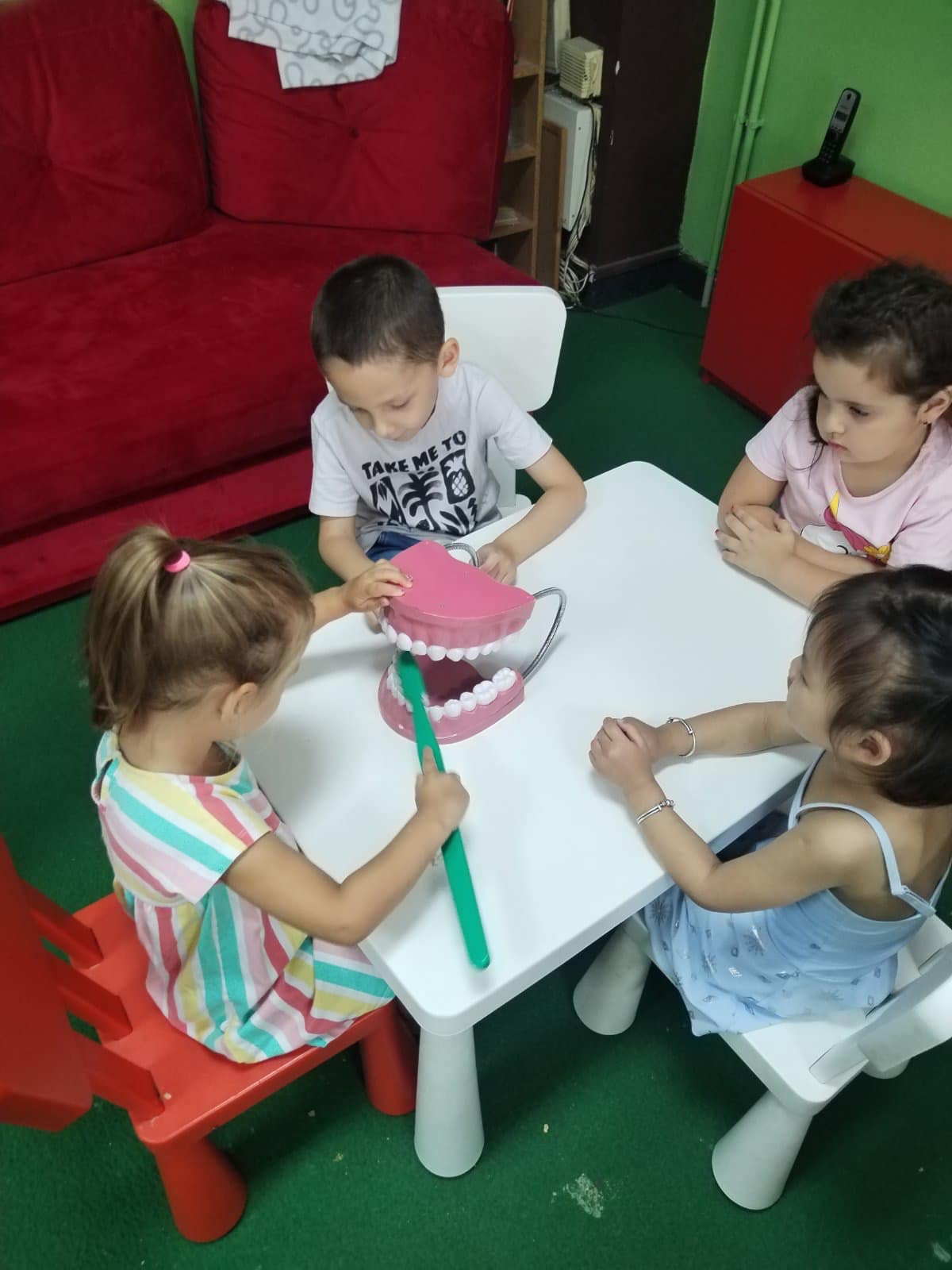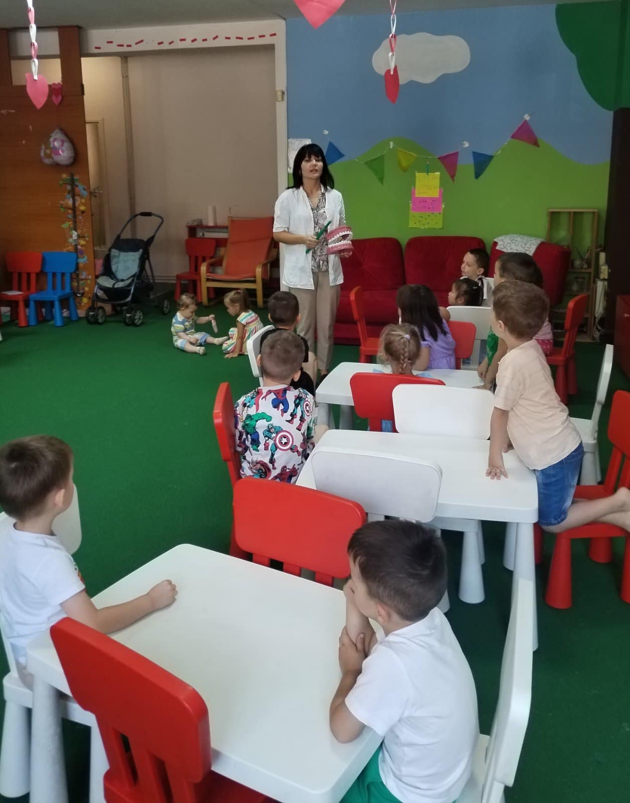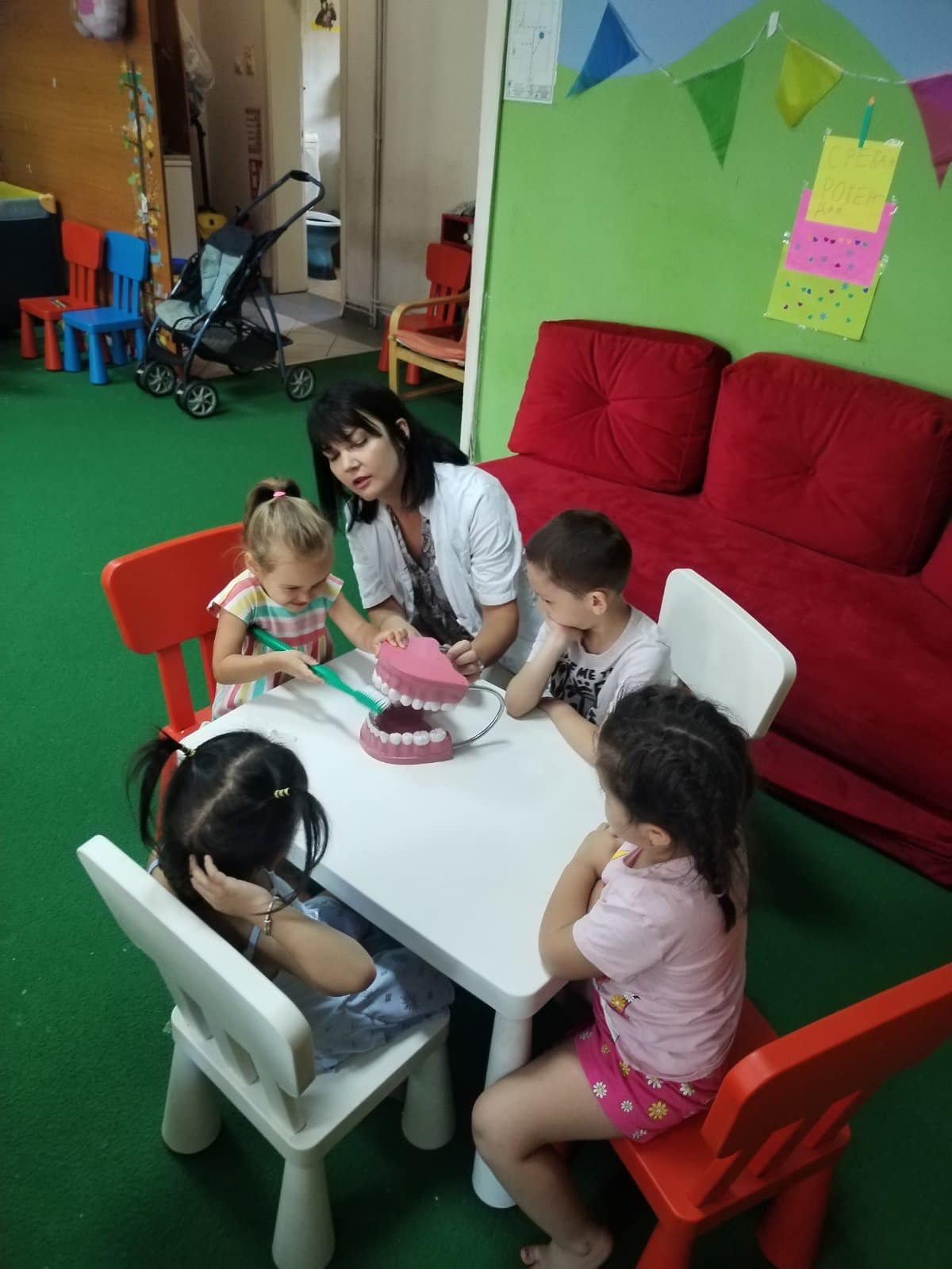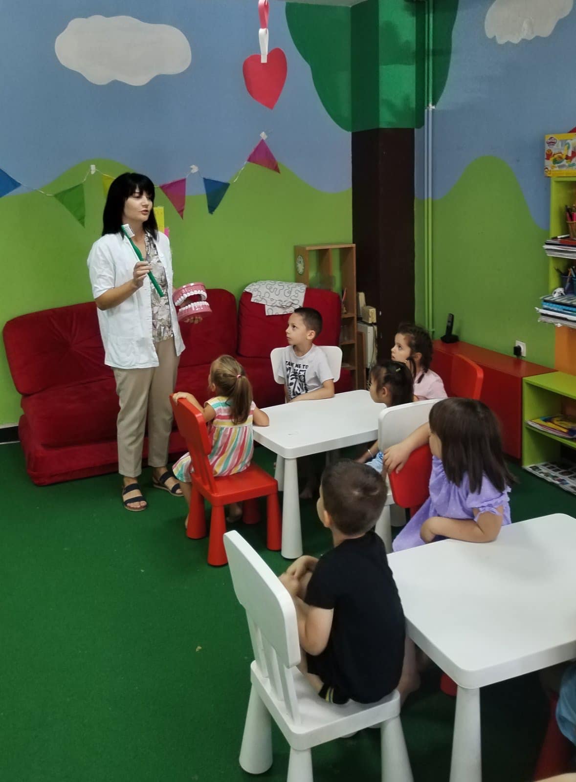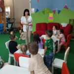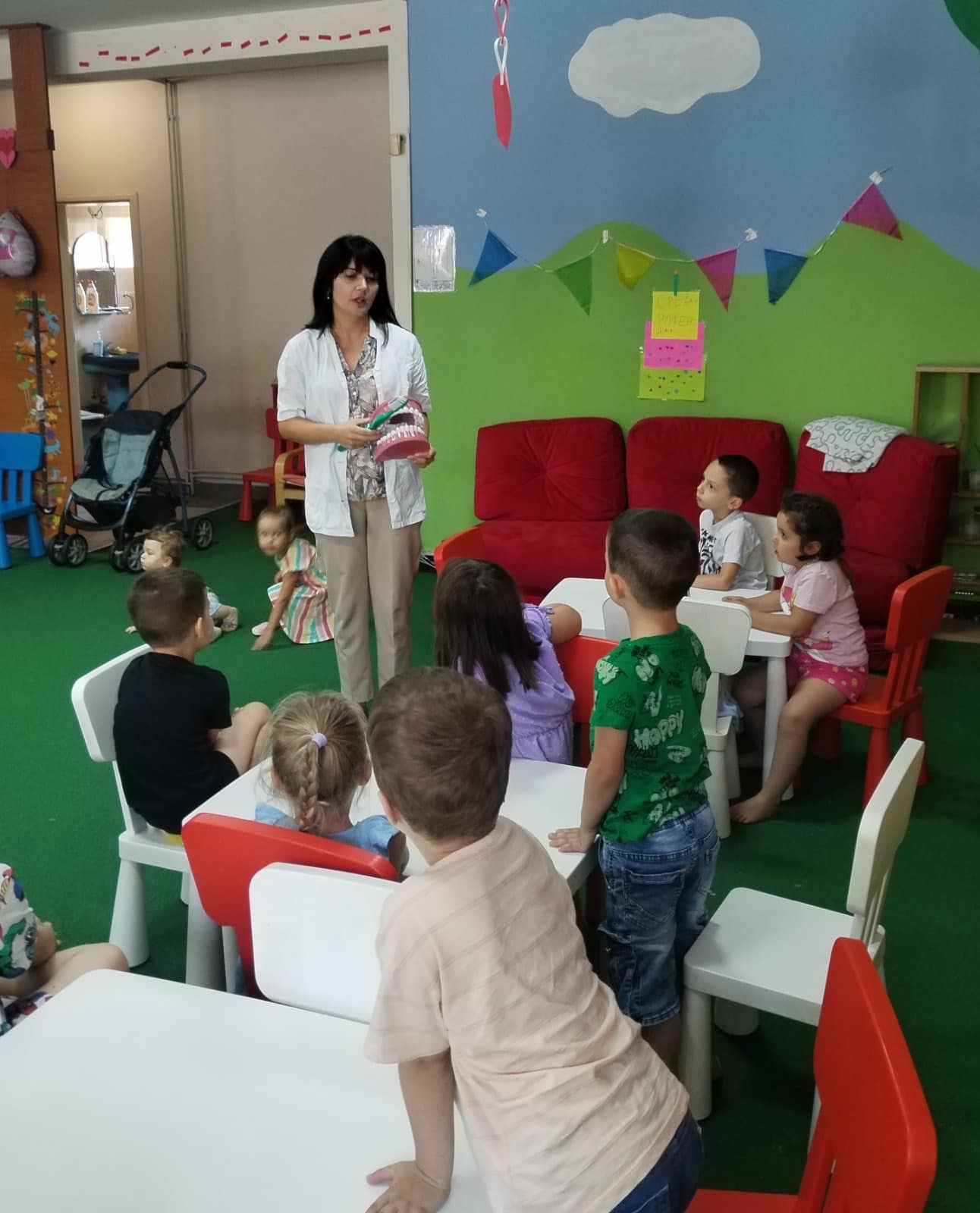 Наши најмлађи пацијенти имали су прилику да уз бојанке и играчке стекну прва знања о значају правилне исхране и технике прања зуба.