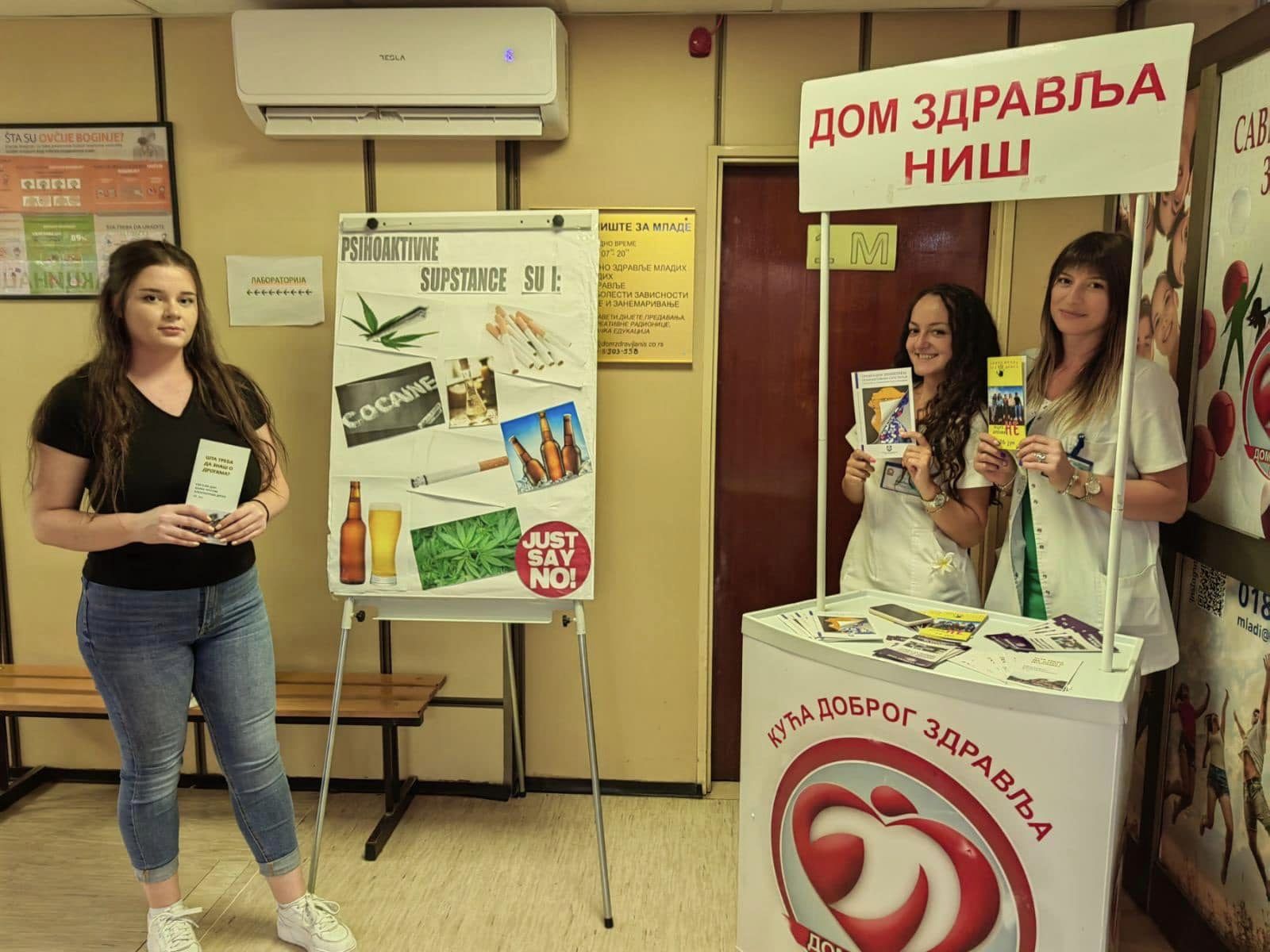 Медицинске екипе Центра за превентивне здравствене услуге и Саветовалишта за младе Дома здравља Ниш, дана 26.06.2024. године у периоду од 11:00 до 13:00 часова у централном холу установе и у холу Саветовалишта за младе , организовале су акцију поводом обележавања Међународног дана борбе против злоупотребе и кријумчарења дрога.