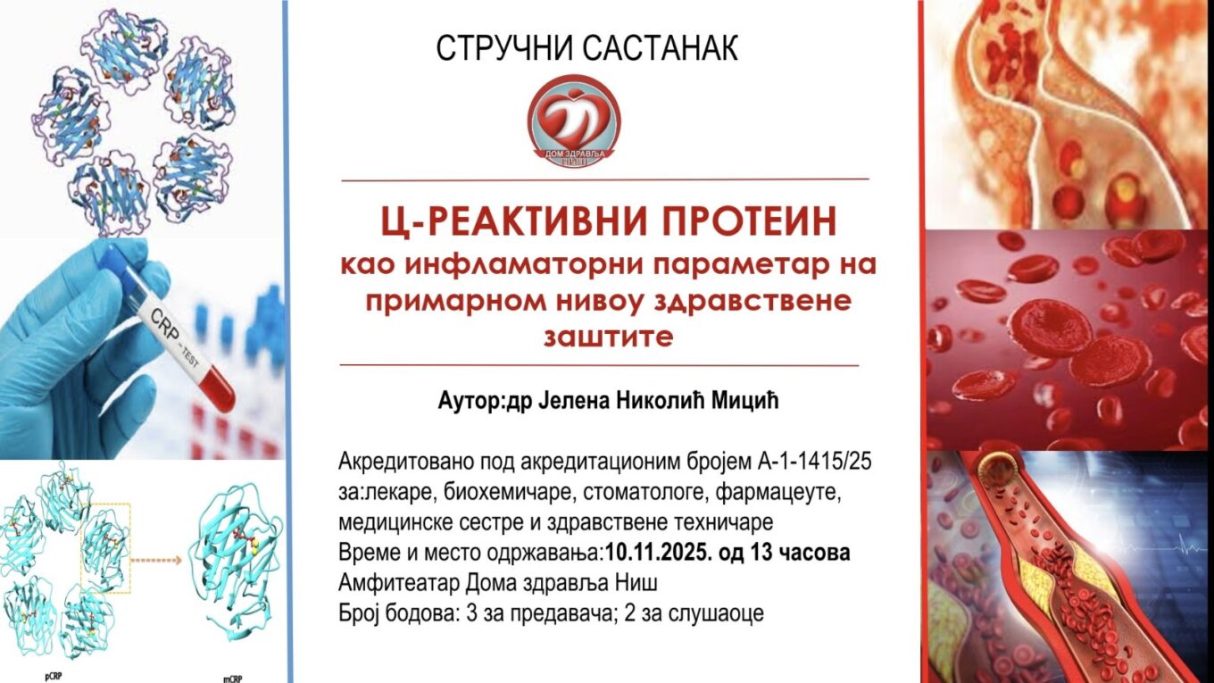 НАЈАВА СТРУЧНОГ САСТАНКА – „Ц-реактивни протеин“- инфламаторни параметар на примарном нивоу здравствене заштите