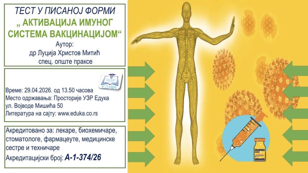 НАЈАВА ТЕСТА У ПИСАНОЈ ФОРМИ „АКТИВАЦИЈА ИМУНОГ СИСТЕМА ВАКЦИНАЦИЈОМ“