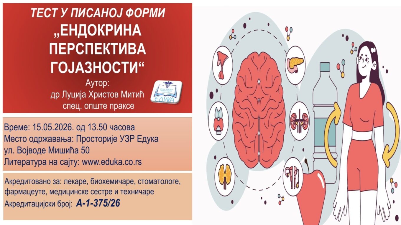 НАЈАВА ТЕСТА У ПИСАНОЈ ФОРМИ „ЕНДОКРИНА ПЕРСПЕКТИВА ГОЈАЗНОСТИ“- аутор др Луција Христов Митић