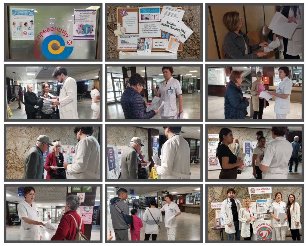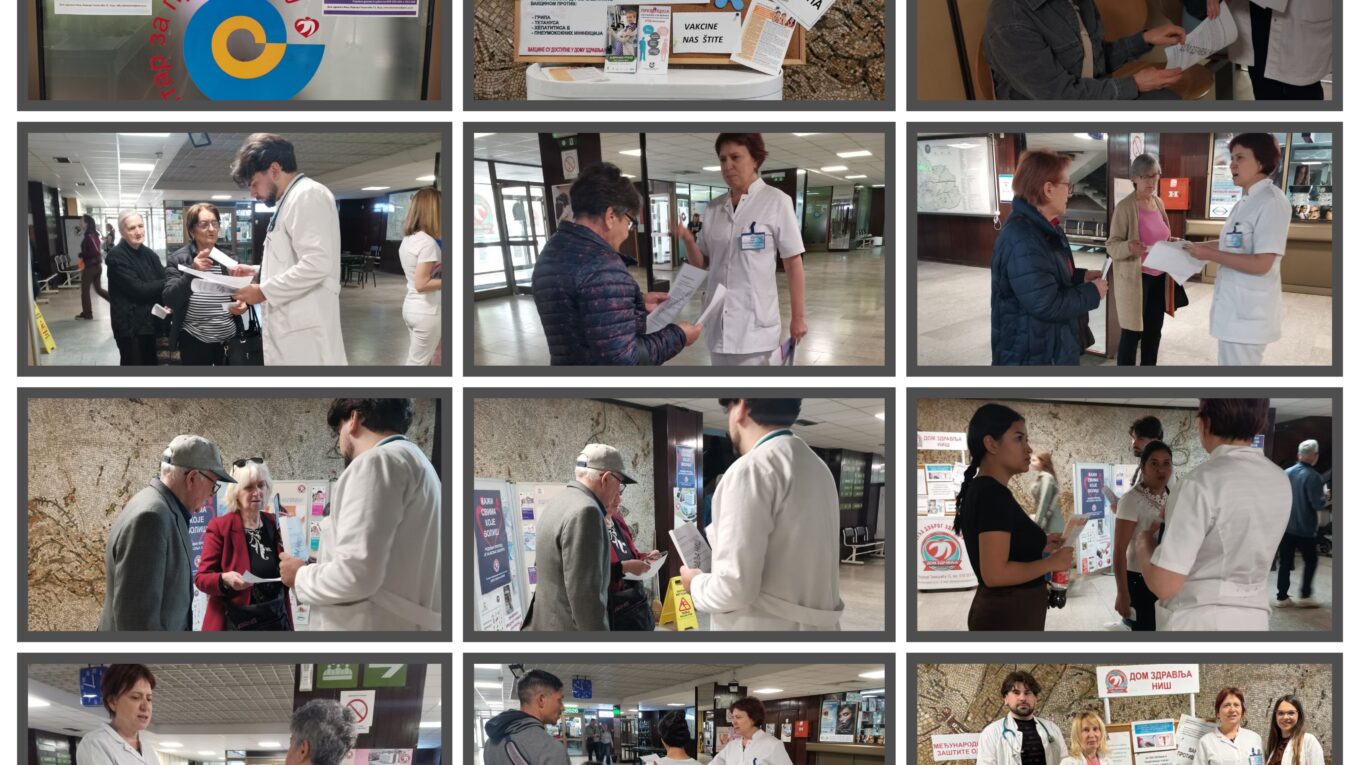У централном холу Дома здравља Ниш, Центар за превенцију Службе за здравствену заштиту одраслих, данас 20.04.2026. године у периоду од 11:00 до 13:00 часова, пригодном акцијом и поделом флајера обележило је Европску недељу имунизације.