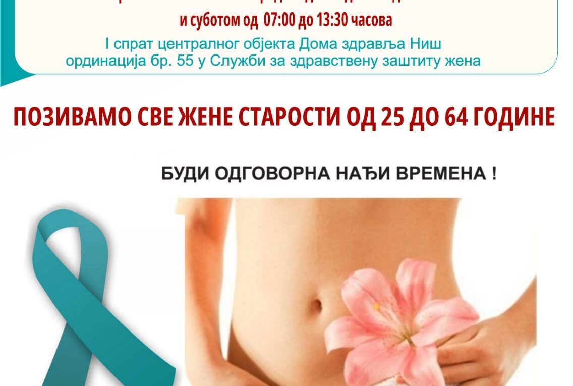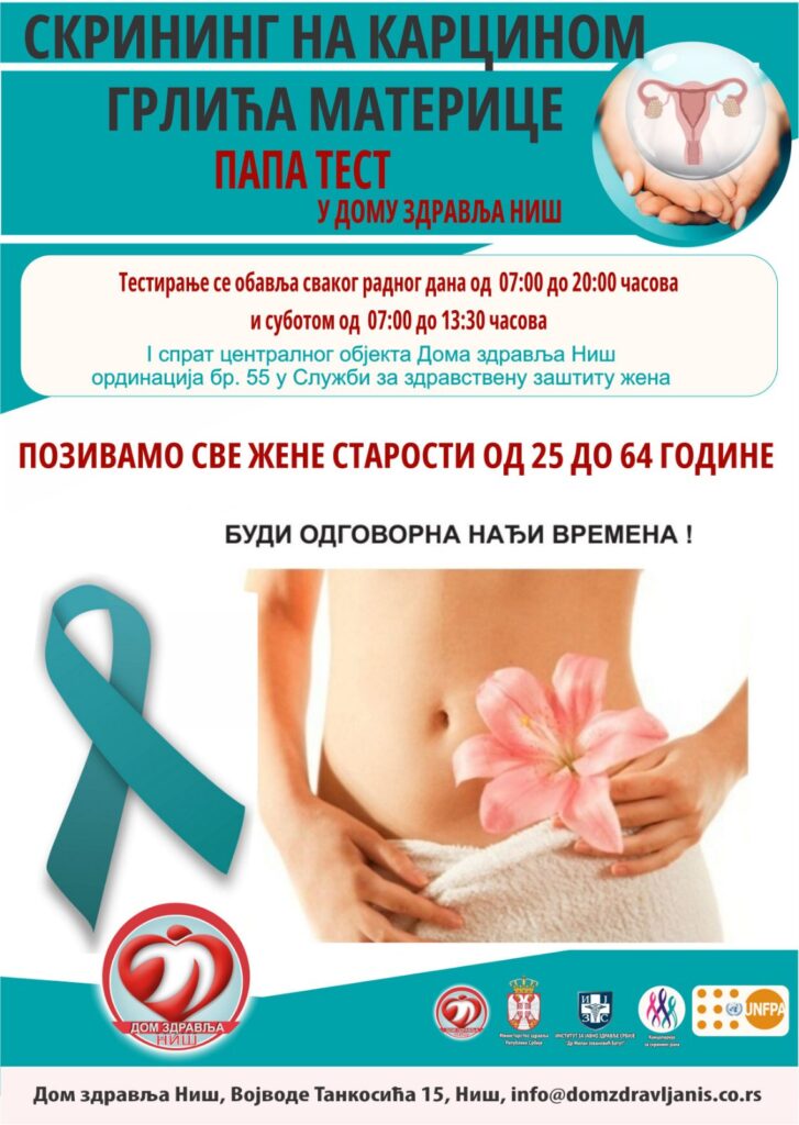 Позивамо и подсећамо све жене старости од 25 до 64 године да и даље могу урадити ПАПА тестирање у Дому здравља Ниш, радним данима у времену од 07:00 до 20:00 часова, а суботом од 07:00 до 13:30 часова у просторији број 55.