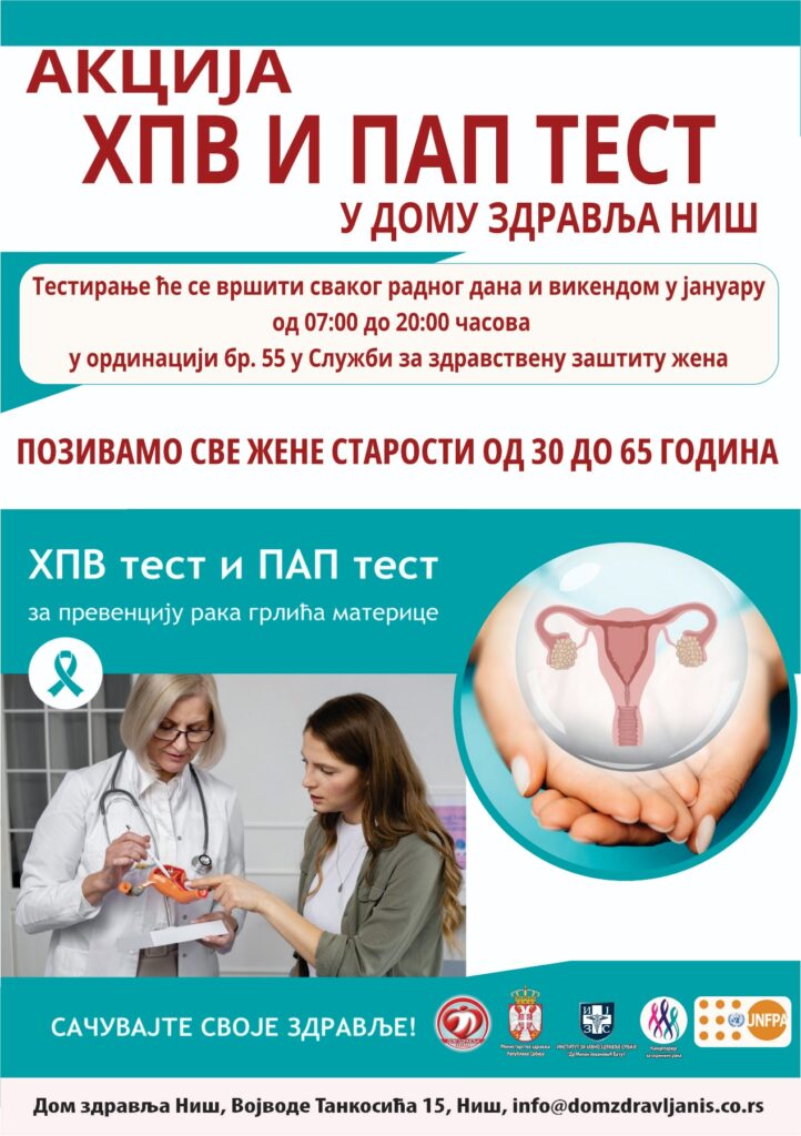 У току је акција бесплатног превентивног тестирања истовременом применом ХПВ и ПАПА теста за 10.000 жена, старости од 30 до 65 година, са територије Београда и Ниша.