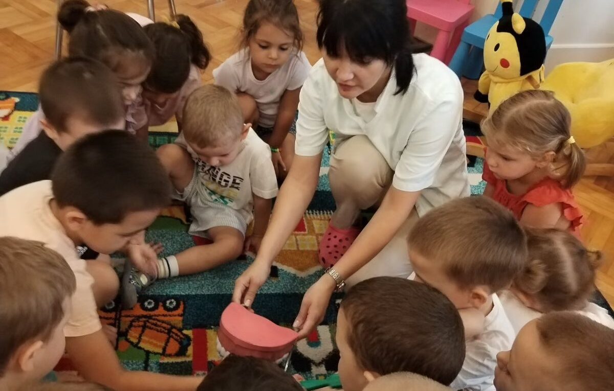 стоматологa доживе као пријатеља који води бригу и њиховом лепом осмеху. Сви су се заједно дружили, бојили, цртали и нешто научили о томе како да брину о својим зубима.