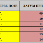 У слици можете погледати датум примања друге дозе у односу на датум примања прве дозе вакцине.