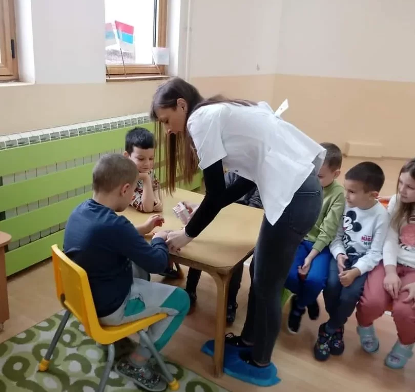 Наши најмлађи пацијенти, деца из вртића „Панда“, имали су прилику да уз бојанке и играчке стекну прва знања о значају правилне исхране и технике прања зуба. Mедицинска екипа Одељења за здравствену заштиту у области денталне медицине деце Дома здравља Ниш организовала веселу радионицу здравствено-васпитног карактера.