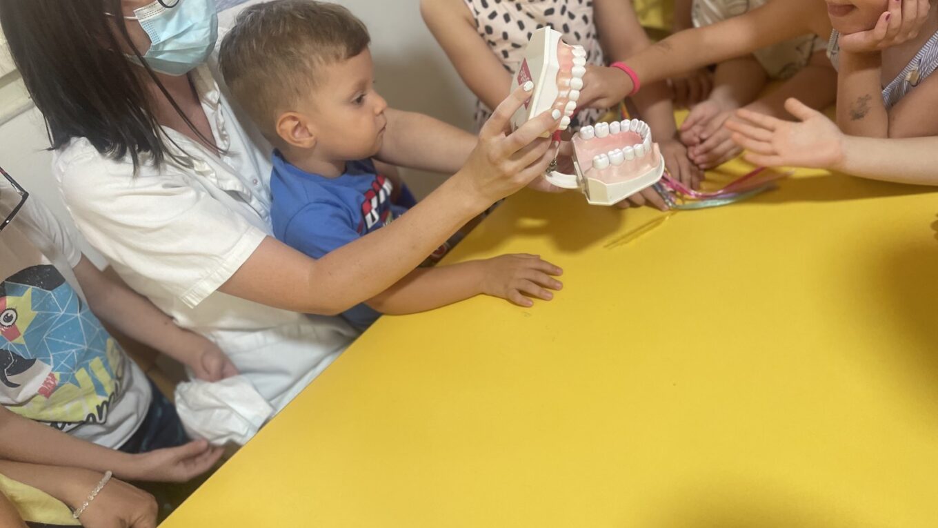 Наши најмлађи пацијенти, деца из вртића „Сунашце“, имали су прилику да уз бојанке и играчке стекну прва знања о значају правилне исхране и технике прања зуба.
