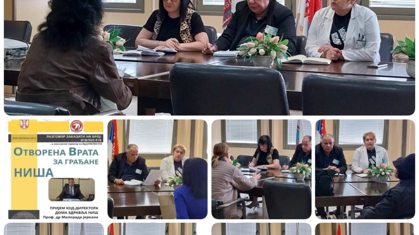 Директоријум Дома здравља Ниш на челу са проф.др Милорадом Јерканом је данас 24.05.2025. године организовао пријем за грађане који су били заинтересовани за састанак са намером да изнесу своје импресије, проблеме, предлоге и похвале на рад ове установе.