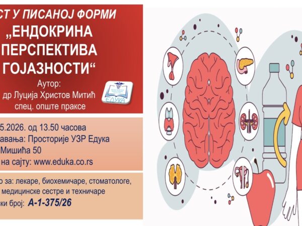 Предавач: др Татјана Матејевић Термин: 17.04.2026. године од 13:00 часова Место одржавања: Амфитеатар Дома здравља Ниш Акредитацијски број: A-1-350/26 Број бодова: • предавач 3 • слушаоци 2 Позивамо вас на акредитовани стручни састанак намењен лекарима,