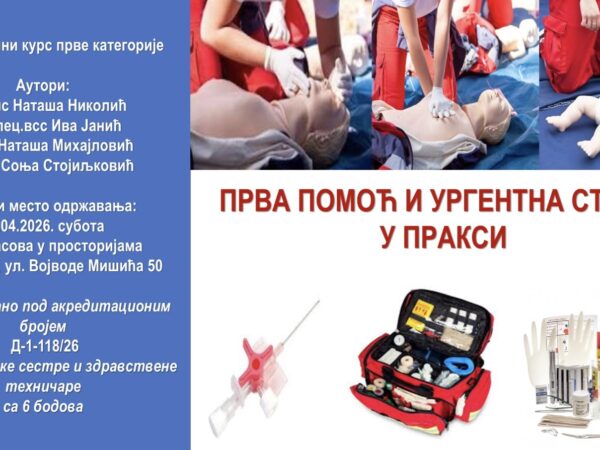 Курс је акредитован под акредитационим бројем Д-1-118/26 за медицинске сестре и здравствене техничаре са 6 бодова и биће одржан 18.04.2026., субота од 10 часова у просторијама УЗР Едука у ул. Војводе Мишића 50. Позивамо све