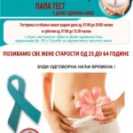 Позивамо и подсећамо све жене старости од 25 до 64 године да и даље могу урадити ПАПА тестирање у Дому здравља Ниш, радним данима у времену од 07:00 до 20:00 часова, а суботом од 07:00 до 13:30 часова у просторији број 55.