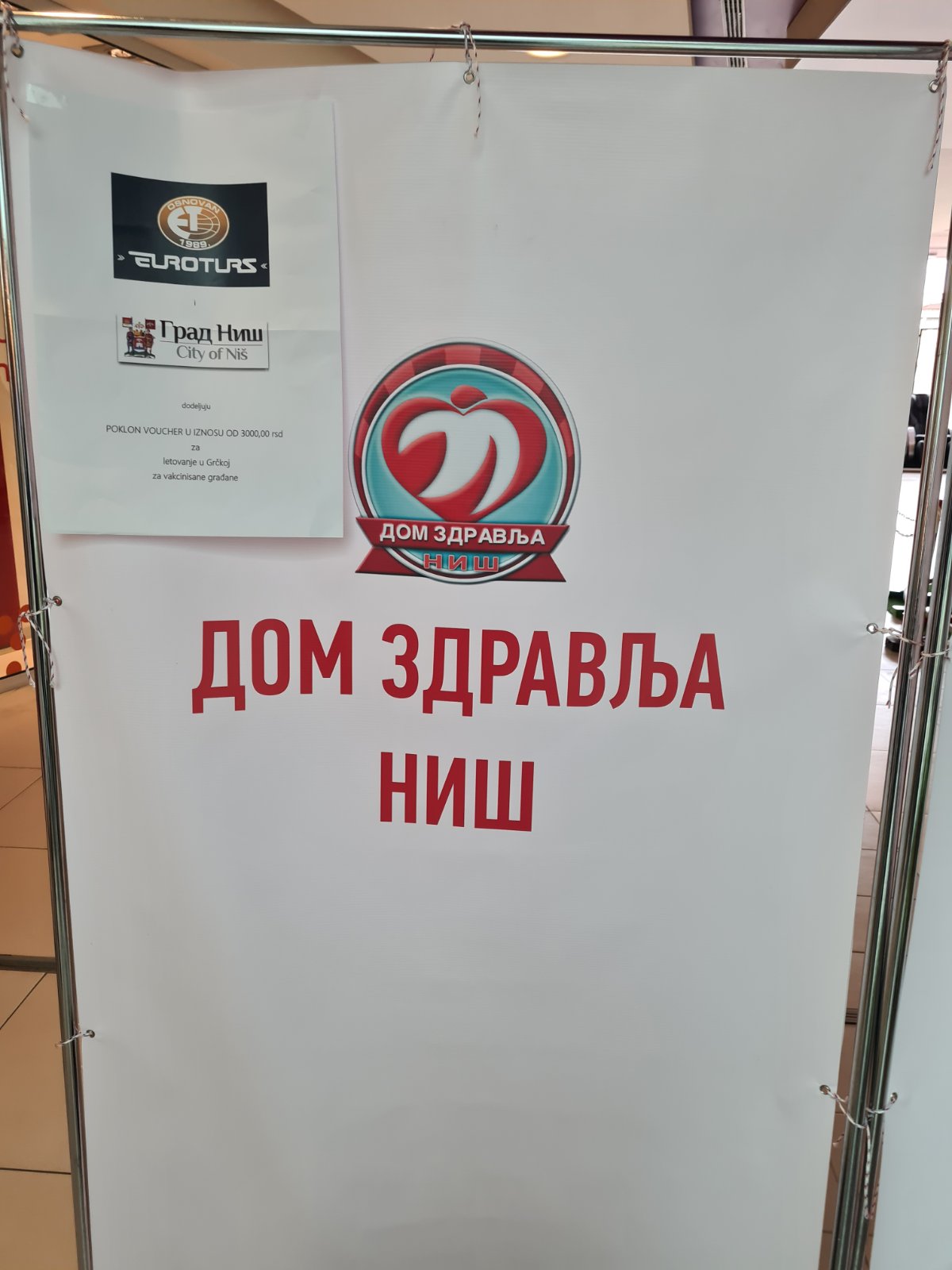 Дом здравља Ниш је уз помоћ Града Ниша који је обезбедио донацију туристичке агенције ,,Еуротурс“ организовао поделу ваучера грађанима који се вакцинишу на вакциналном пункту у тржном центру ,,Форум“.