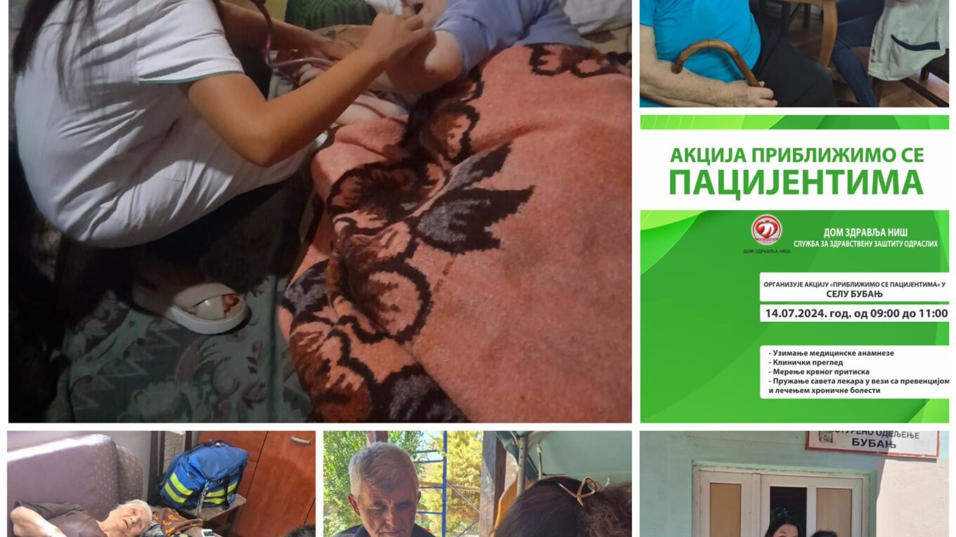 Медицинска екипа Дома здравља Ниш је и овог викенда у недељу 14.07.2024. године обавила прегледе мештана села Бубањ под називом „Приближимо се пацијентима“. У току акције посебно су сагледани стари, мање покретни и непокретни пацијенти.