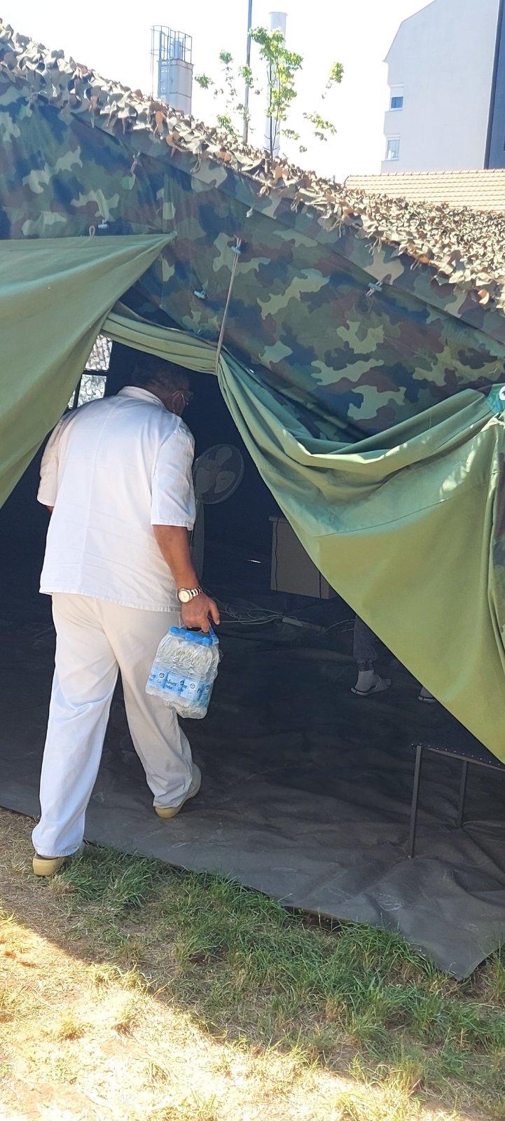 Имајући у виду високе спољашње температуре и рад запослених под свом заштитном опремом, као и пацијенте који се са здравственим тегобама јављају лекарима, директор је поделио Пролом воду у ПЕК паковању из донације.