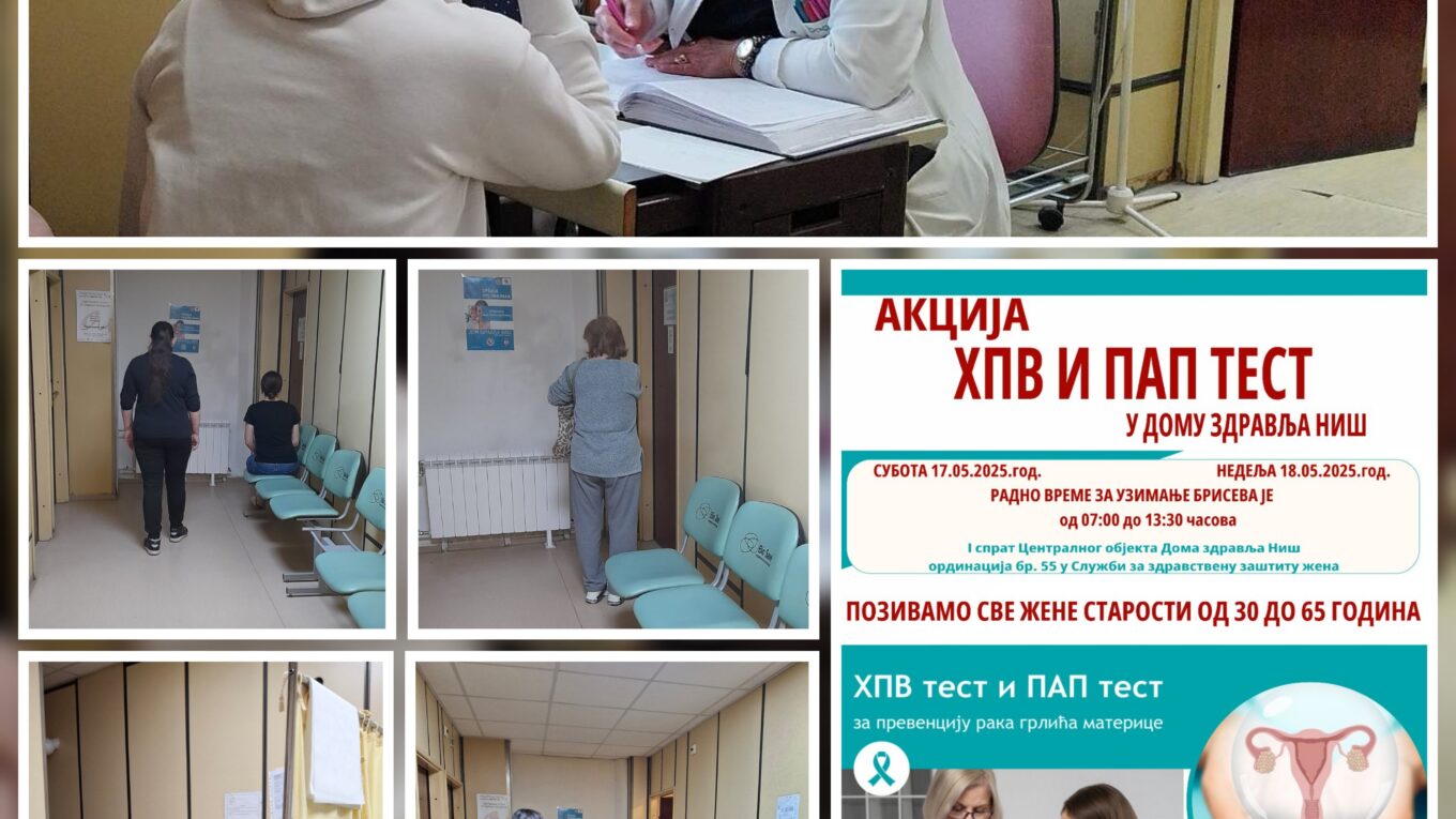Обавештавамо суграђанке старосне доби од 30 до 65 година да бесплатно могу да ураде тестирање истовременом применом ХПВ и Папаниколау теста и тиме провере своје здравље, јер број тестова који је намењен Дому здравља Ниш при самом крају, с обзиром да је до сада тестирање обавило више од 5300 жена, а да је број тестова ограничен на 5500.