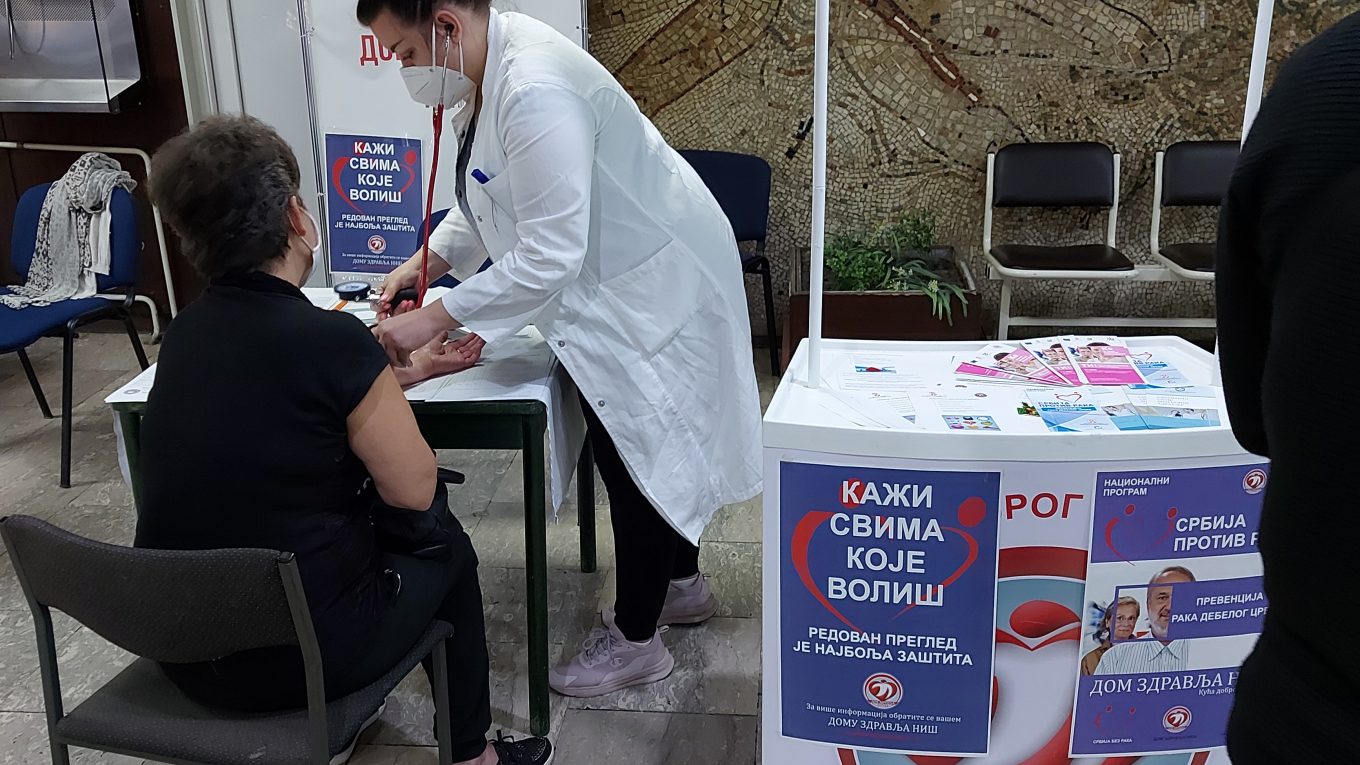 У централном објекту Дома здравља Ниш у холу, сваког радног дана у недељи у периоду од 08:00 – 11:00 часова и викендом од 08:00 – 14:00 часова, грађани могу да провере своје здравље. У току акције грађани могу да ураде скрининг прегледе на: кардиоваскуларне болести, дијабетес, депресију, рак дојке, рак грлића материце и рак дебелог црева. Данас је урађено 631 превентивни преглед.