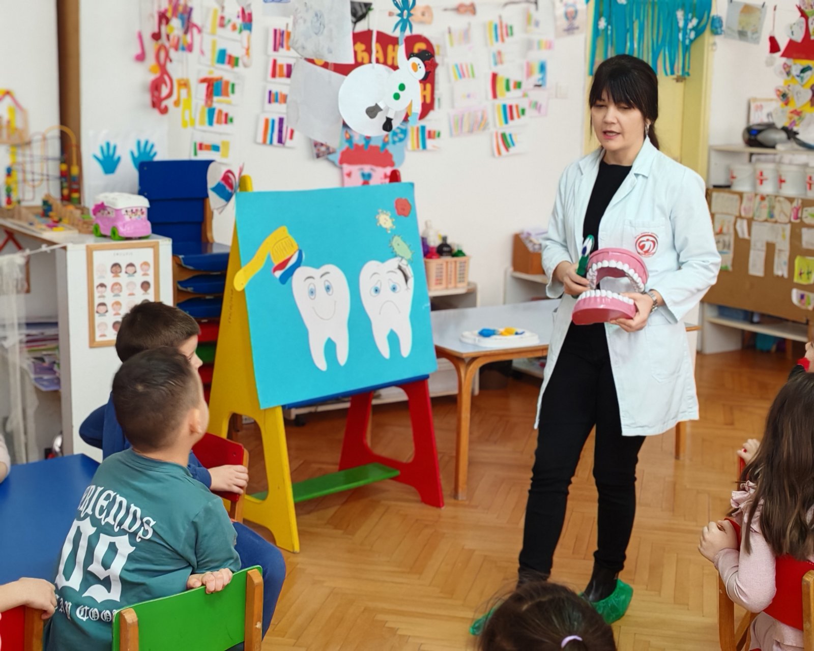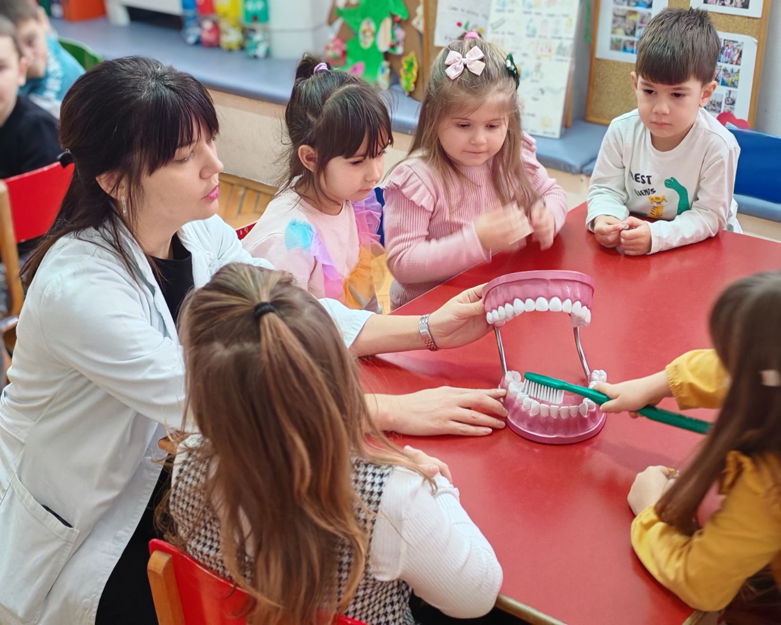 Да би до ових сазнања дошли и стекли одређене навике, екипа Одељења за здравствену заштиту у области денталне медицине деце, организовала је 21.01.2026. године у периоду од 09:00 до 11:00 часова, едукативну и занимљиву радионицу уз коришћење медицинског модела за децу из вртића „Сунце“ и „Плави чуперак“.