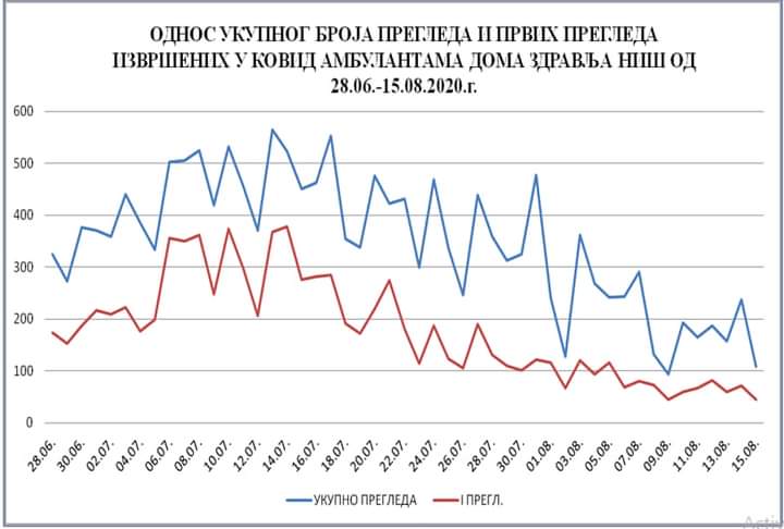 Док је у јулу у ковид амбулантама Дома здравља Ниш било у просеку по 400 прегледа дневно, августа се ситуација поправила. Према подацима , почетком овог месеца дневно је било преко 200 прегледа, док је последњих дана тај број нешто мањи.