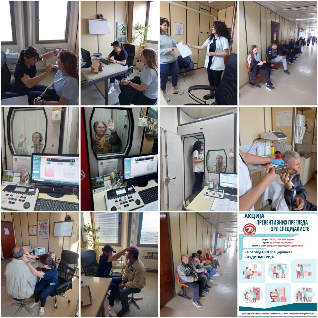 Разноврсним, али неопходним здравственим прегледима, велики број медицинских екипа дају свој допринос да свест грађана о значају превентивних и скрининг прегледа буде на већем нивоу. Ове суботе нишлије су у оквиру акције ,,Отворена врата“ имале прилику да ураде и ОРЛ преглед и аудиометрију.