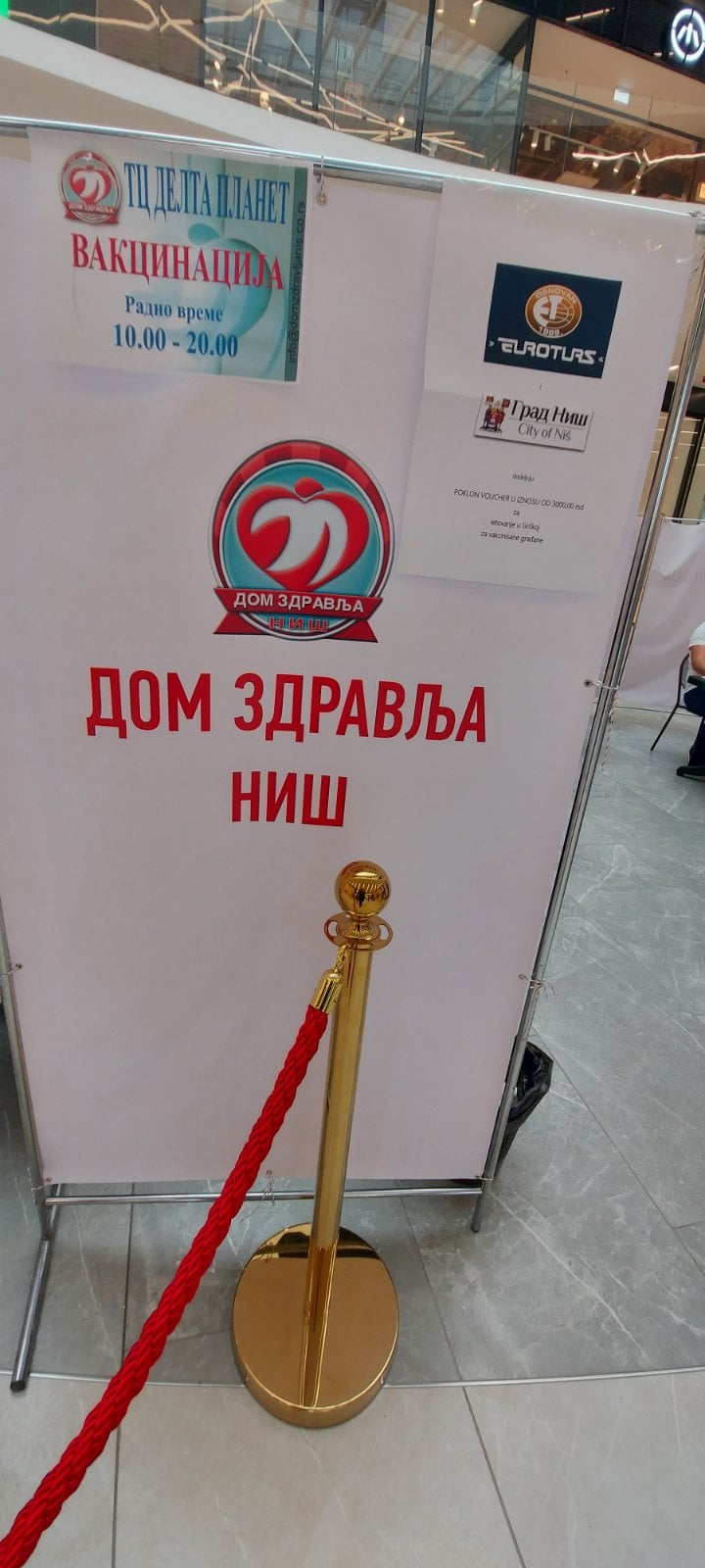 Данас је у тржном центру ,,Делта планет“ организована подела 50 поклон ваучера које је донирала туристичка агенција ,,Еуротурс“ грађанима који су се вакцинисали на овом вакциналном пункту.