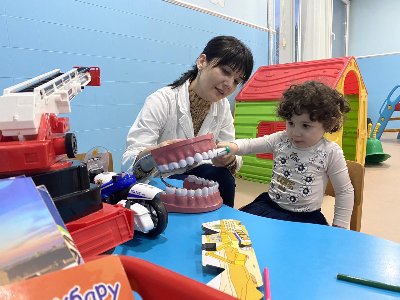Наши најмлађи пацијенти су у дивно осликаној ординацији Зубић вила имали прилику да уз бојанке и играчке стекну прва знања о значају правилне исхране и технике прања зуба.
