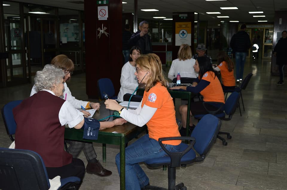 У централном холу Дома здравља Ниш у току су превентивни прегледи који укључују контролу крвног притиска, шећера у крви, затим преглед ЕКГ који се обавља у просторији Центра за превентивне здравствене услуге и прегледе офталмолога на петом спрату Дома здравља Ниш.